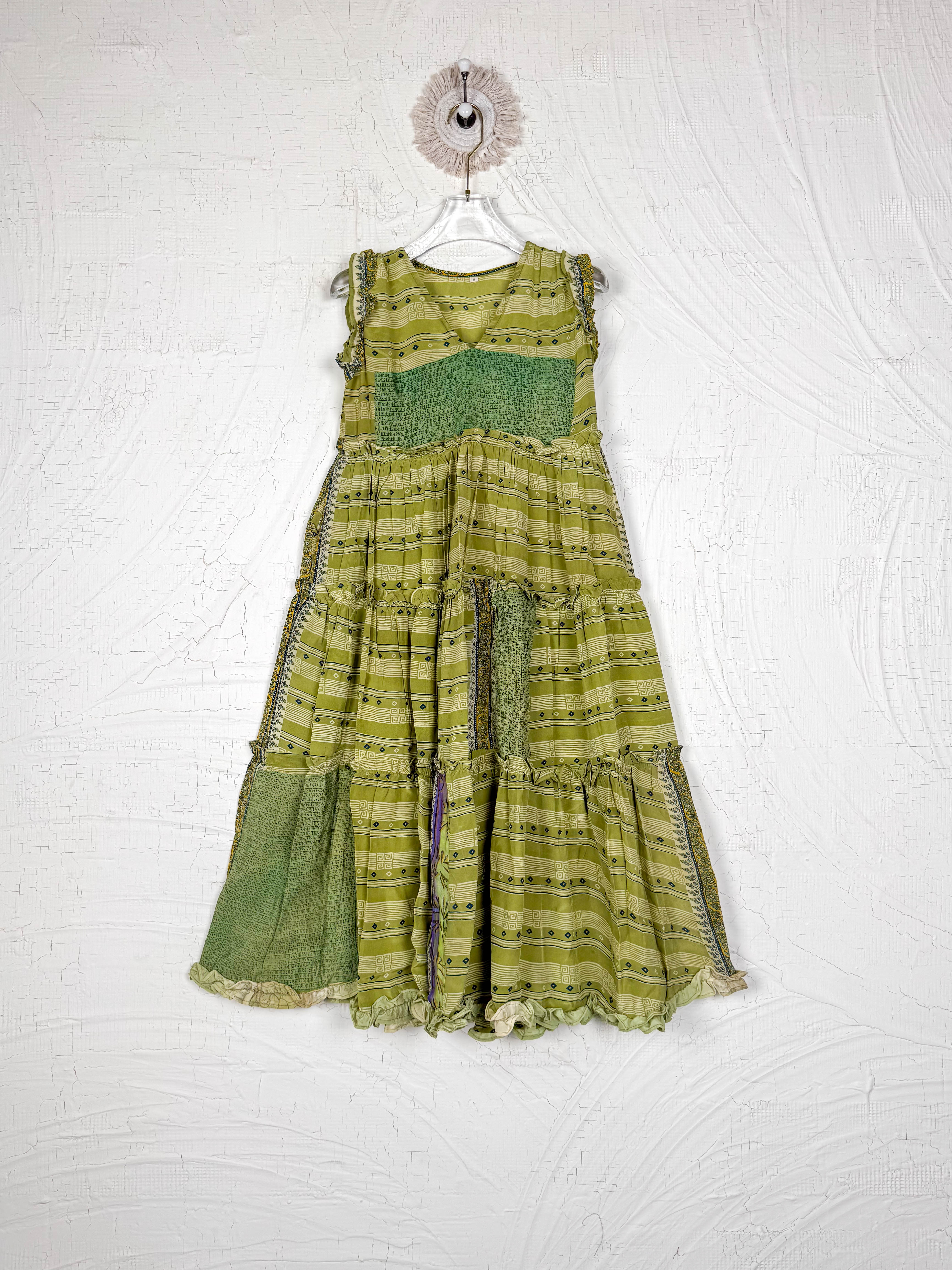 Silk Ruffle Dress Green Floral