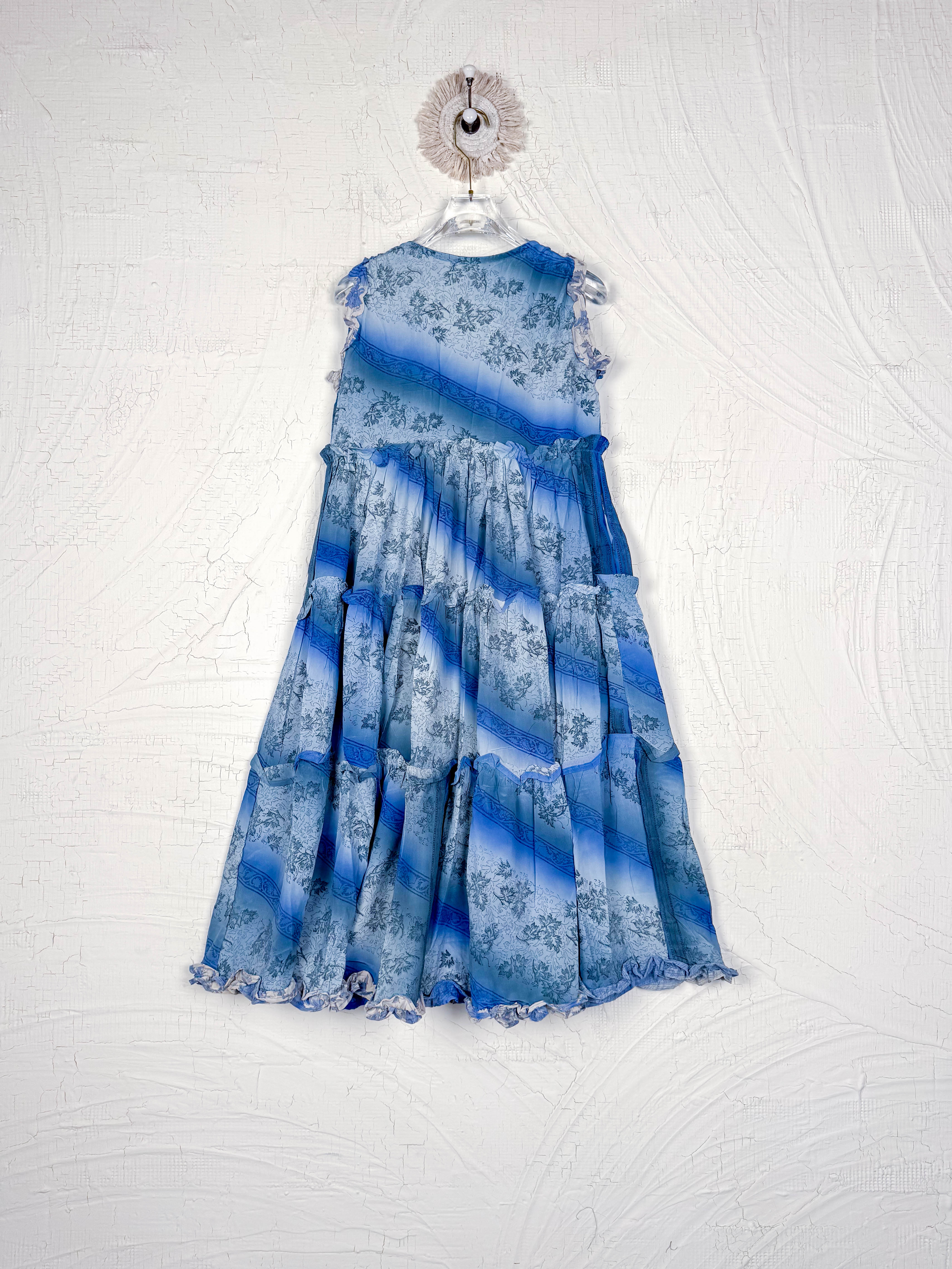 Silk Ruffle Dress Blue Diagonals