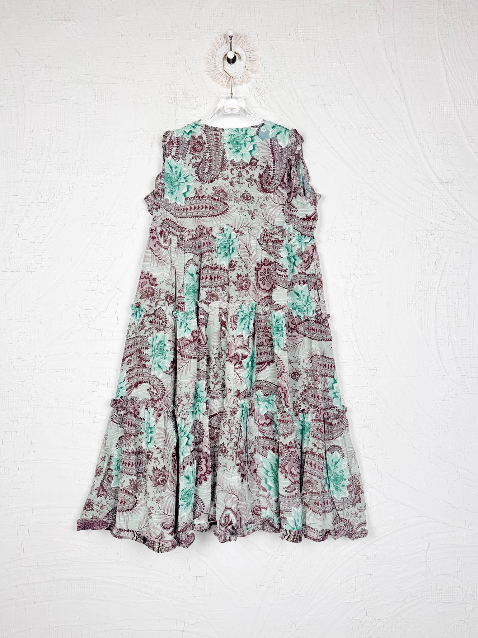 Handcrafted from Vintage Crepe Silk, every stitch and the flowy ruffle tells a story of craftsmanship, emotions and heritage!