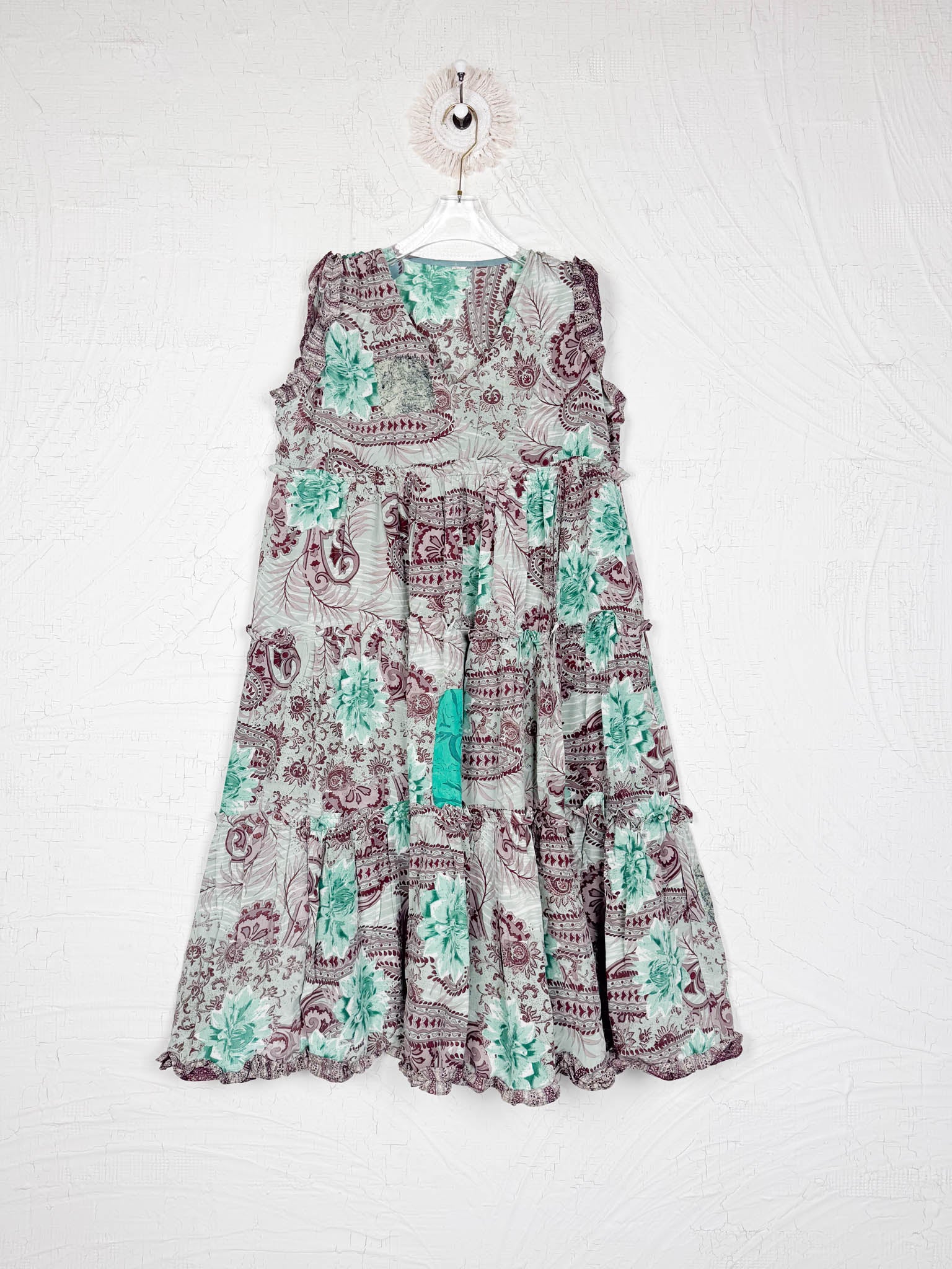 Unique Patchwork: this dress is made from kantha patches arranged by hands and a side slit to give you a unique fresh look!