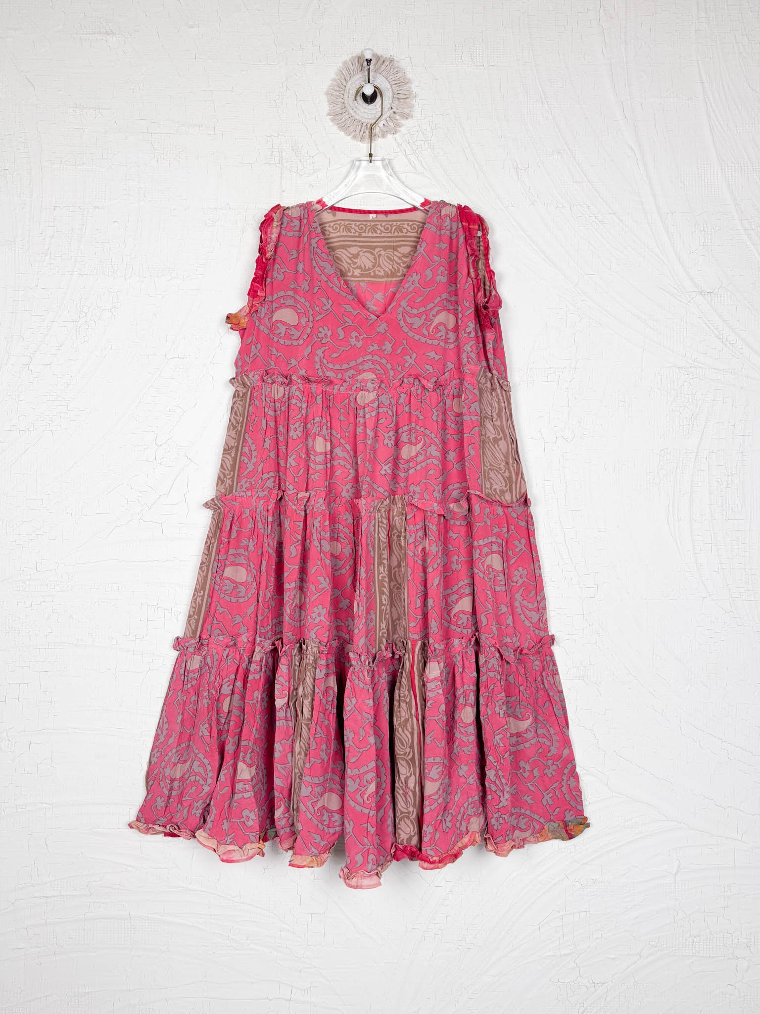 Handcrafted from Vintage Crepe Silk, every stitch and the flowy ruffle tells a story of craftsmanship, emotions and heritage!