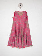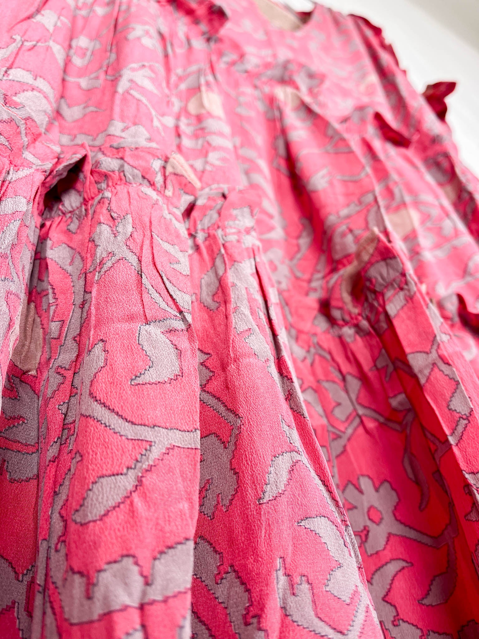 Silk Ruffle Dress Pink Floral