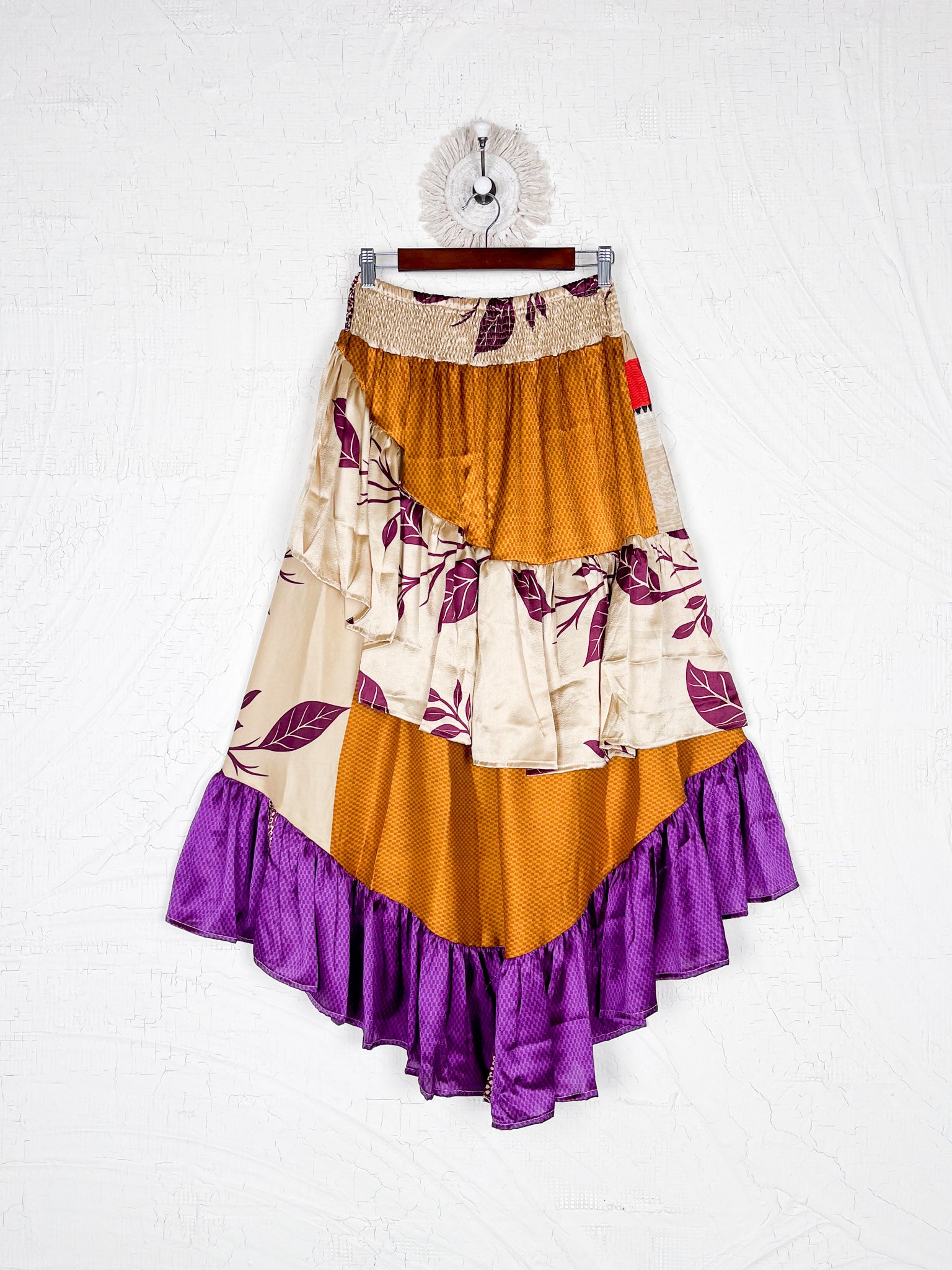 Imagine having Skirt that connects you to the indian traditional work. Crafted from vintage Silk, each Skirt tells its own story through a rich tapestry of Pre-loved Silk sarees.