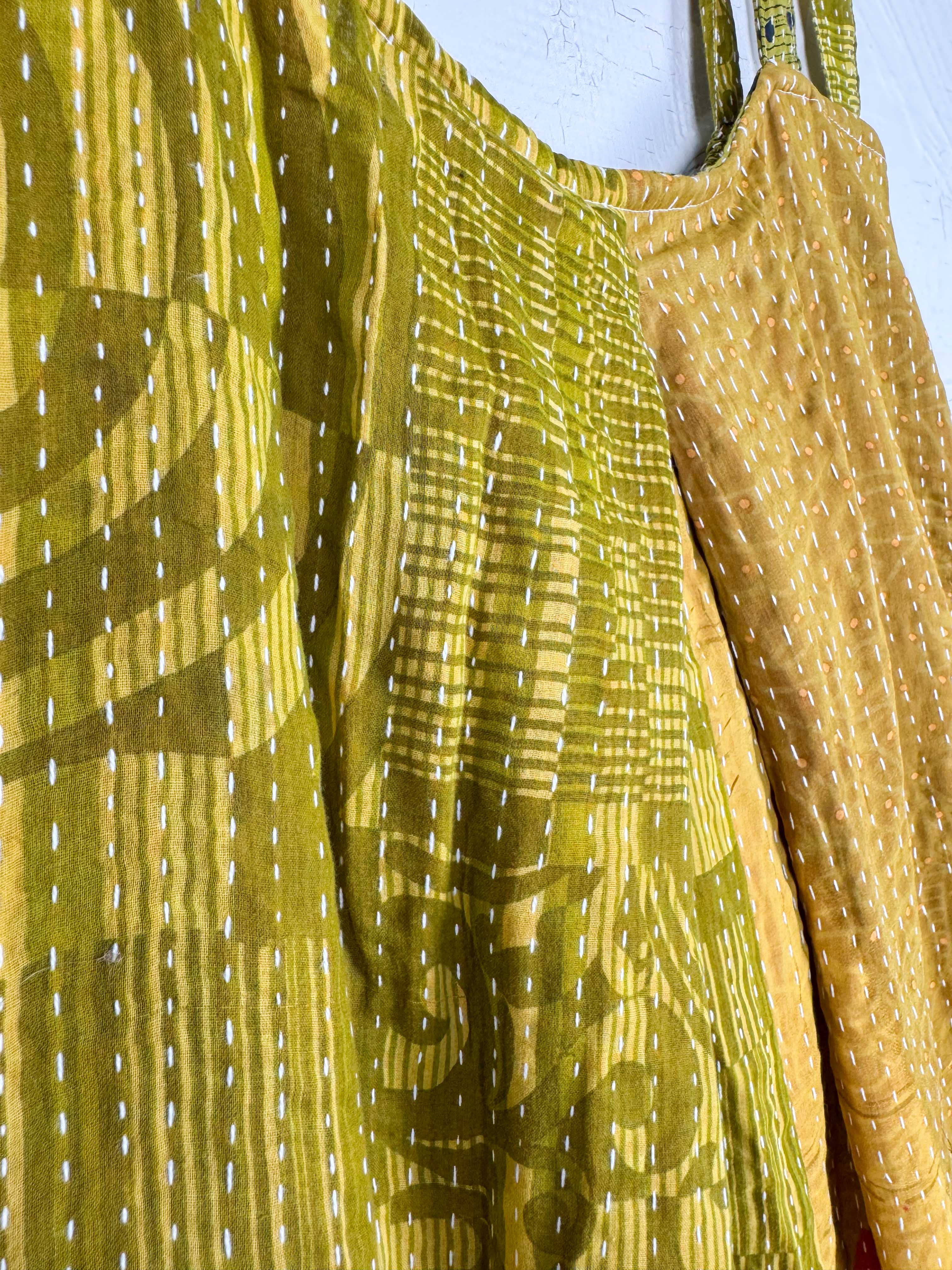 Sleeveless Kantha Jumpsuit Olive Patchwork