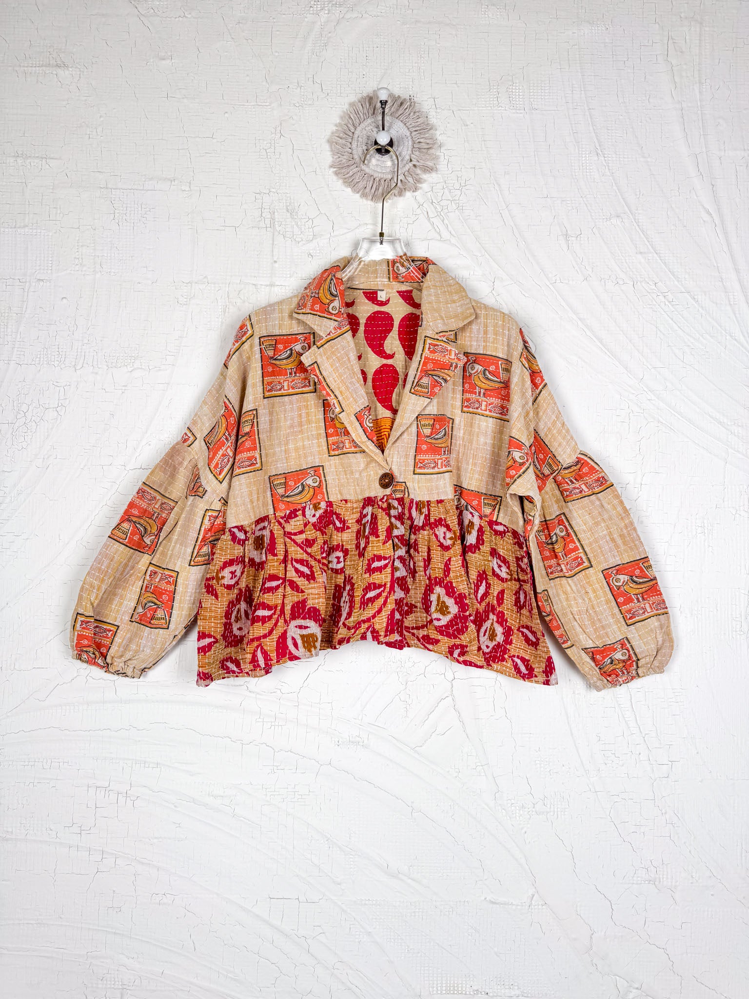 Terra Kantha Top Beige and Red