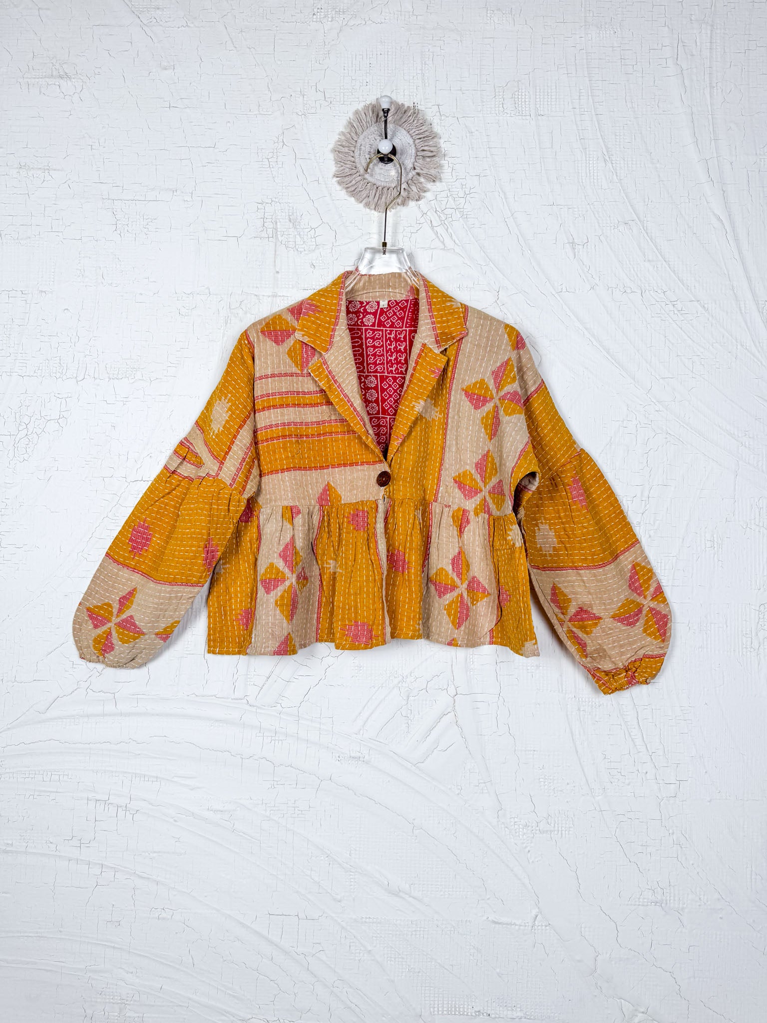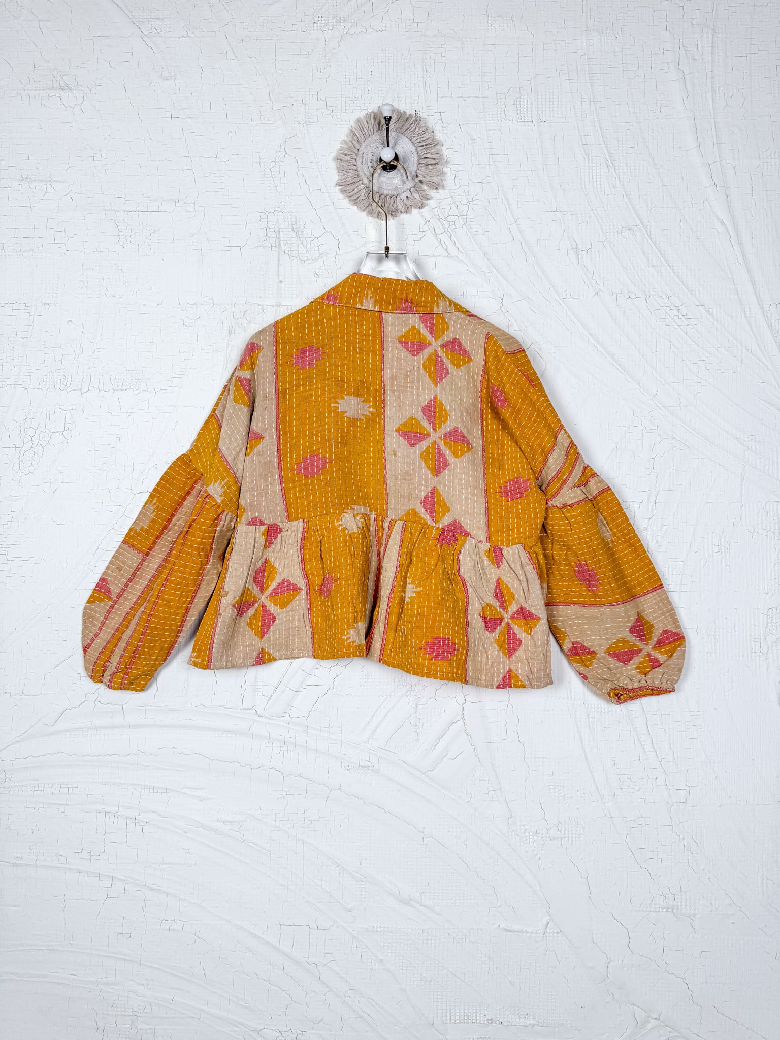 Our products are unique because they're handmade from pre-loved fabrics. This means that minor imperfections are a part of their unique charm and are not considered defects. We hope you'll love these one-of-a-kind qualities!