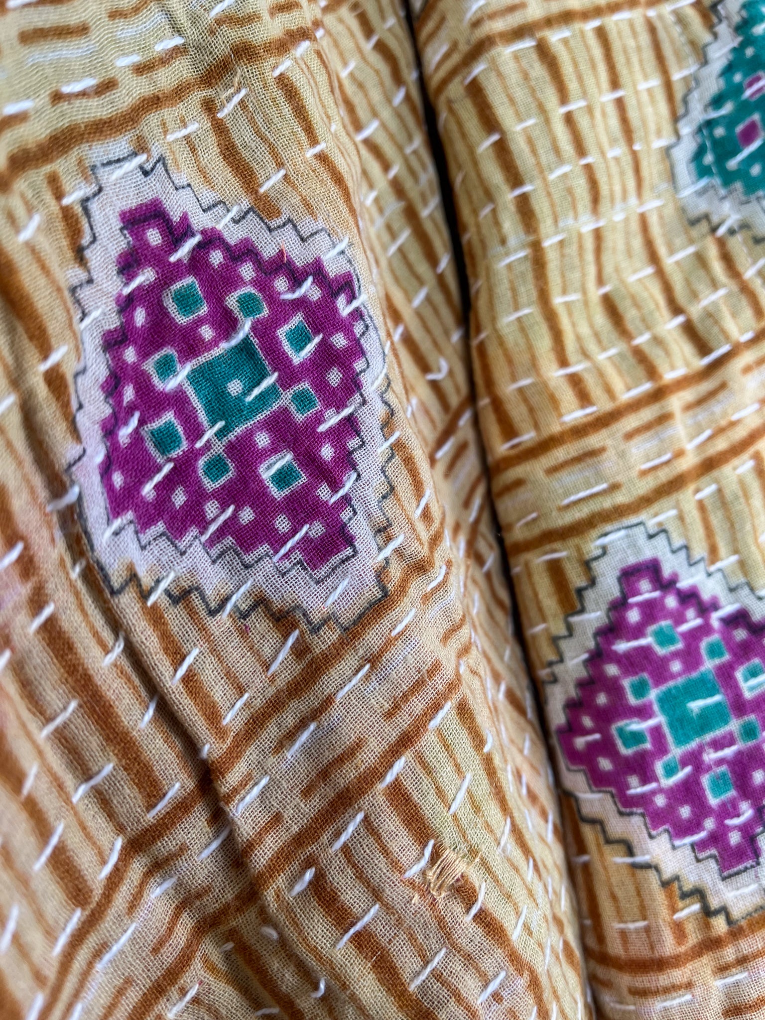 Handcrafted in India, this mid-length poncho dress is a unique piece of wearable art made from vintage Kantha fabric. Its beauty lies in the diverse tapestry of hand-stitched fabric patterns and colours, a hallmark of traditional Kantha patchwork.Designed for effortless style, it drapes gracefully with a wide, open silhouette, a comfortable