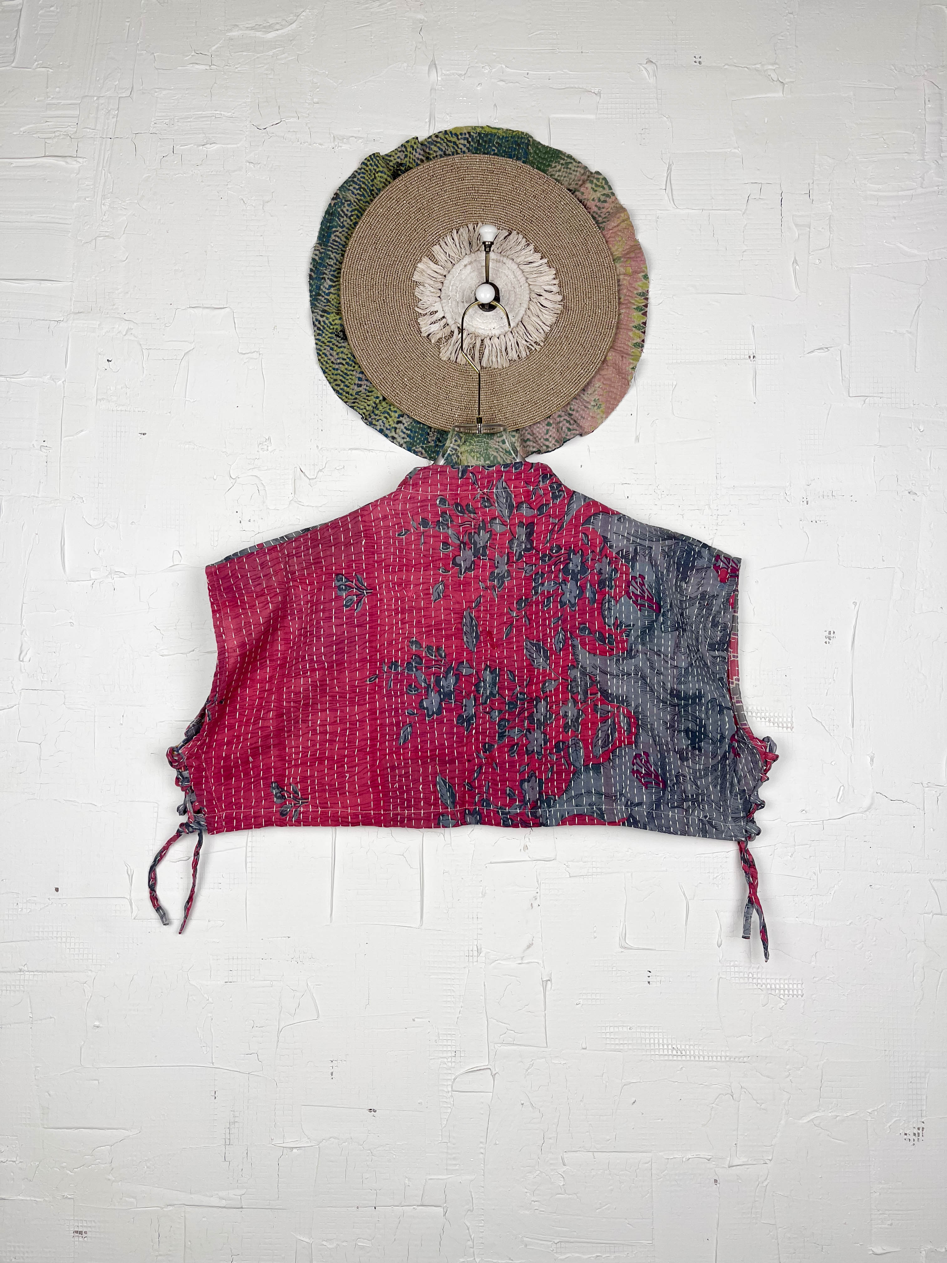 Imagine sun-kissed days in this delightful mini Kantha top. Crafted from vintage Kantha, a traditional floral print inspired by Indian heritage. The unique surplice neck and breezy short sleeves invite carefree movement that fits amazingly to your body curves celebrating your playful feminine spirit. With its cropped silhouette and playful side laces, this top adds a touch of fresh charm to your summer adventures.