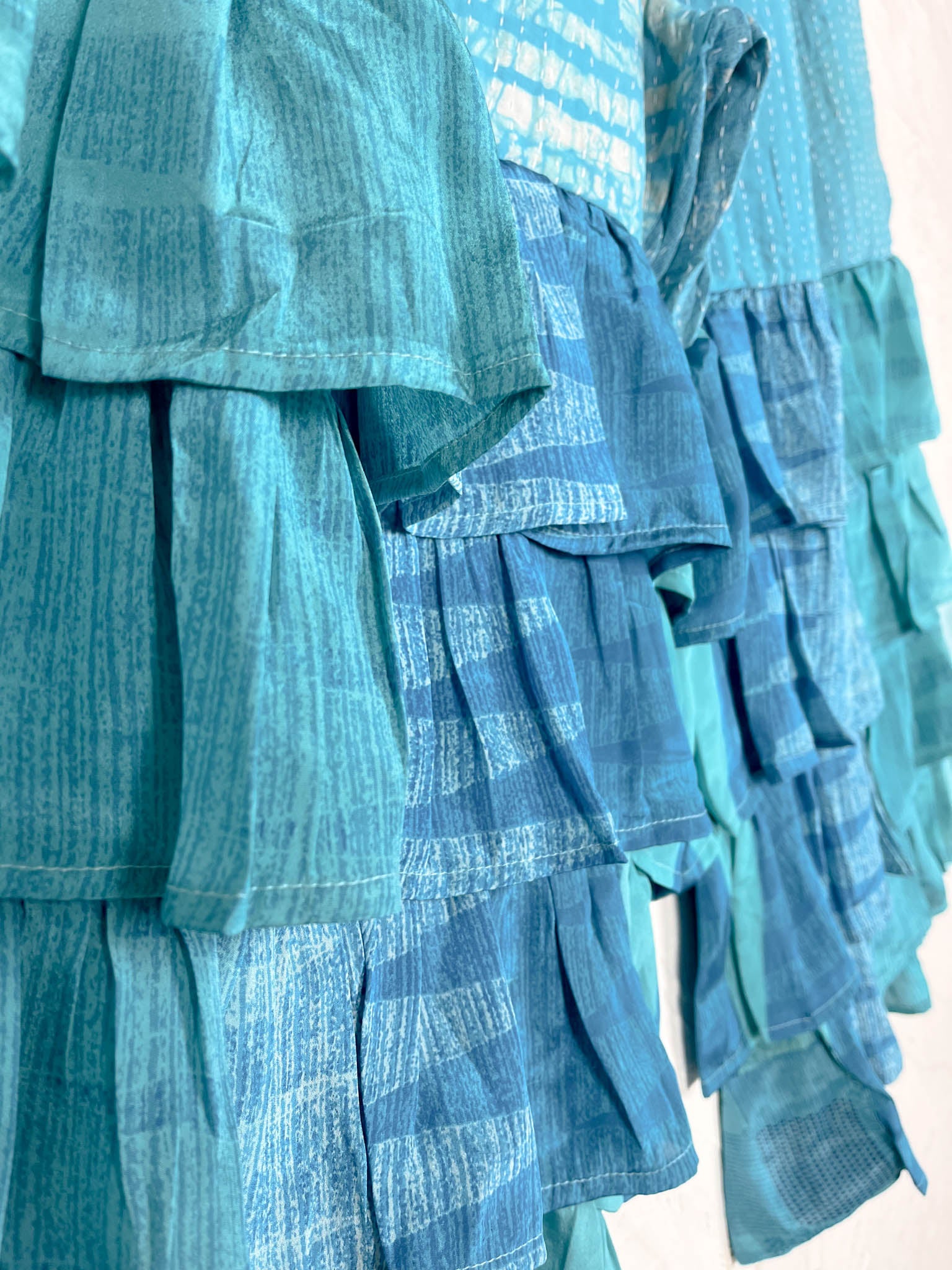 How does this beauty move? As you walk or twirl, the flowy silk cascades into playful frills at the hem, creating an enchanting wave with every step you take!