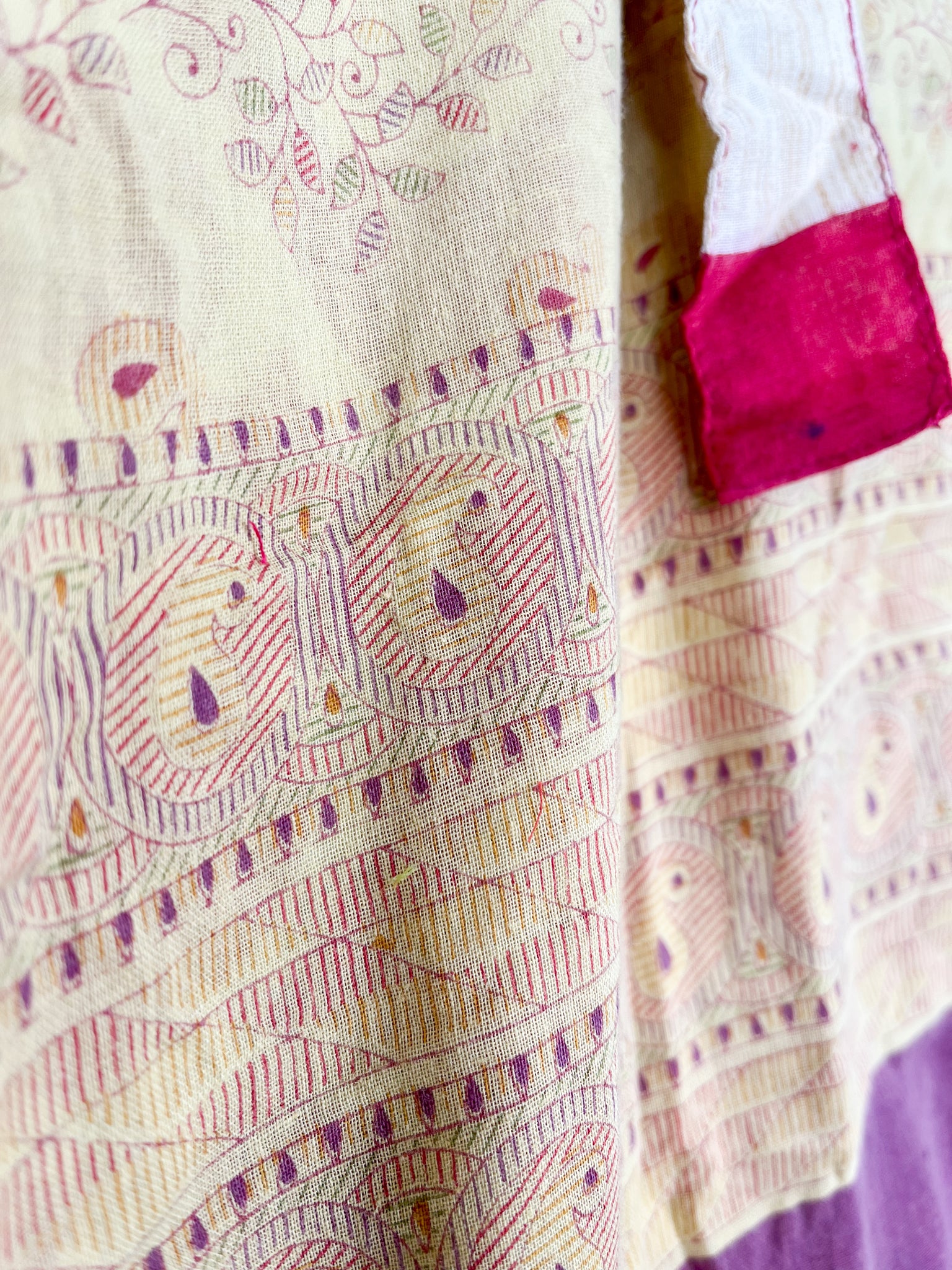 Made from vintage cotton sarees featuring traditional floral prints and vibrant hues, these pants are a celebration of timeless design. Their loose, flowing wide legs ensure ultimate comfort and freedom of movement, while the Adjustable front tie waistband with back-half elastic gives you control for desired fit.