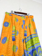 Made from vintage cotton sarees featuring traditional floral prints and vibrant hues, these pants are a celebration of timeless design. Their loose, flowing wide legs ensure ultimate comfort and freedom of movement, while the Adjustable front tie waistband with back-half elastic gives you control for desired fit.