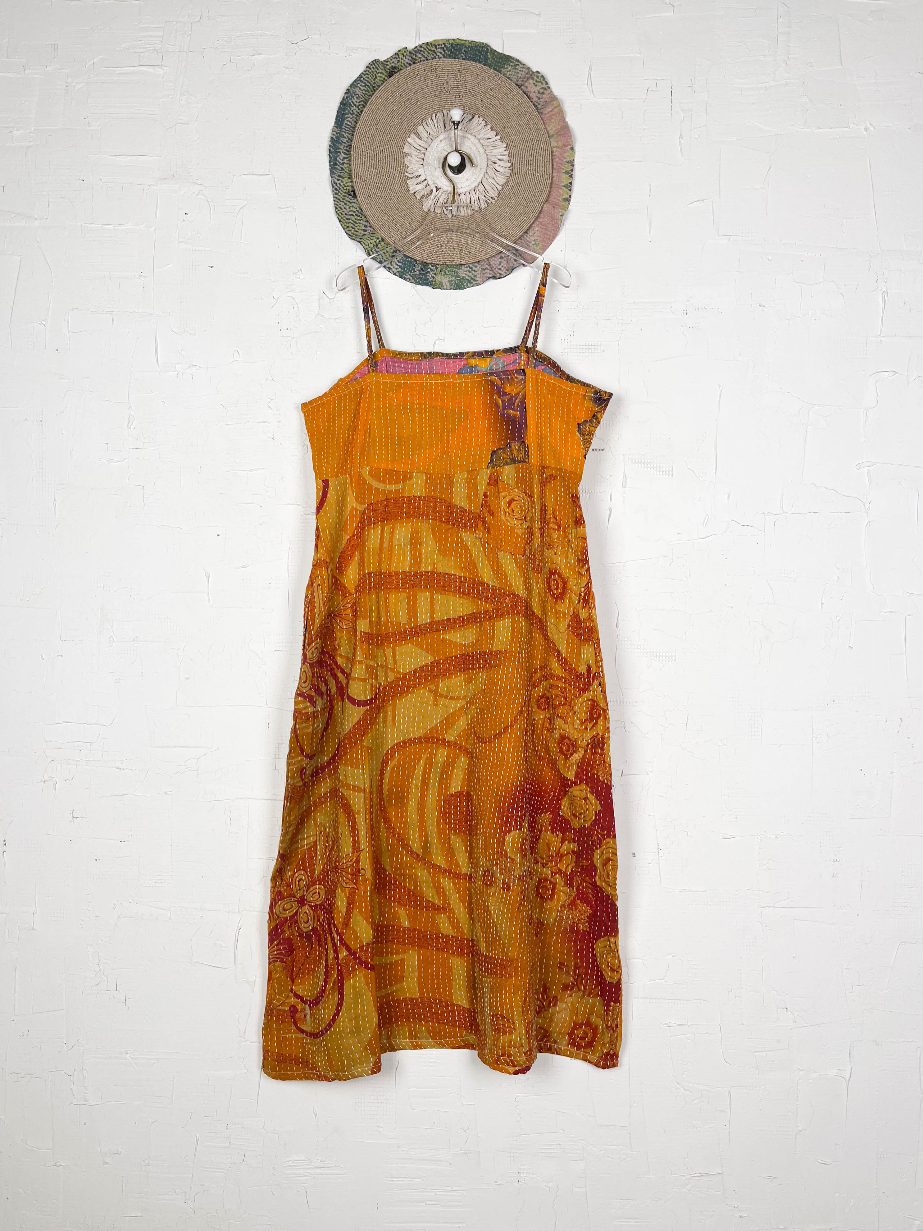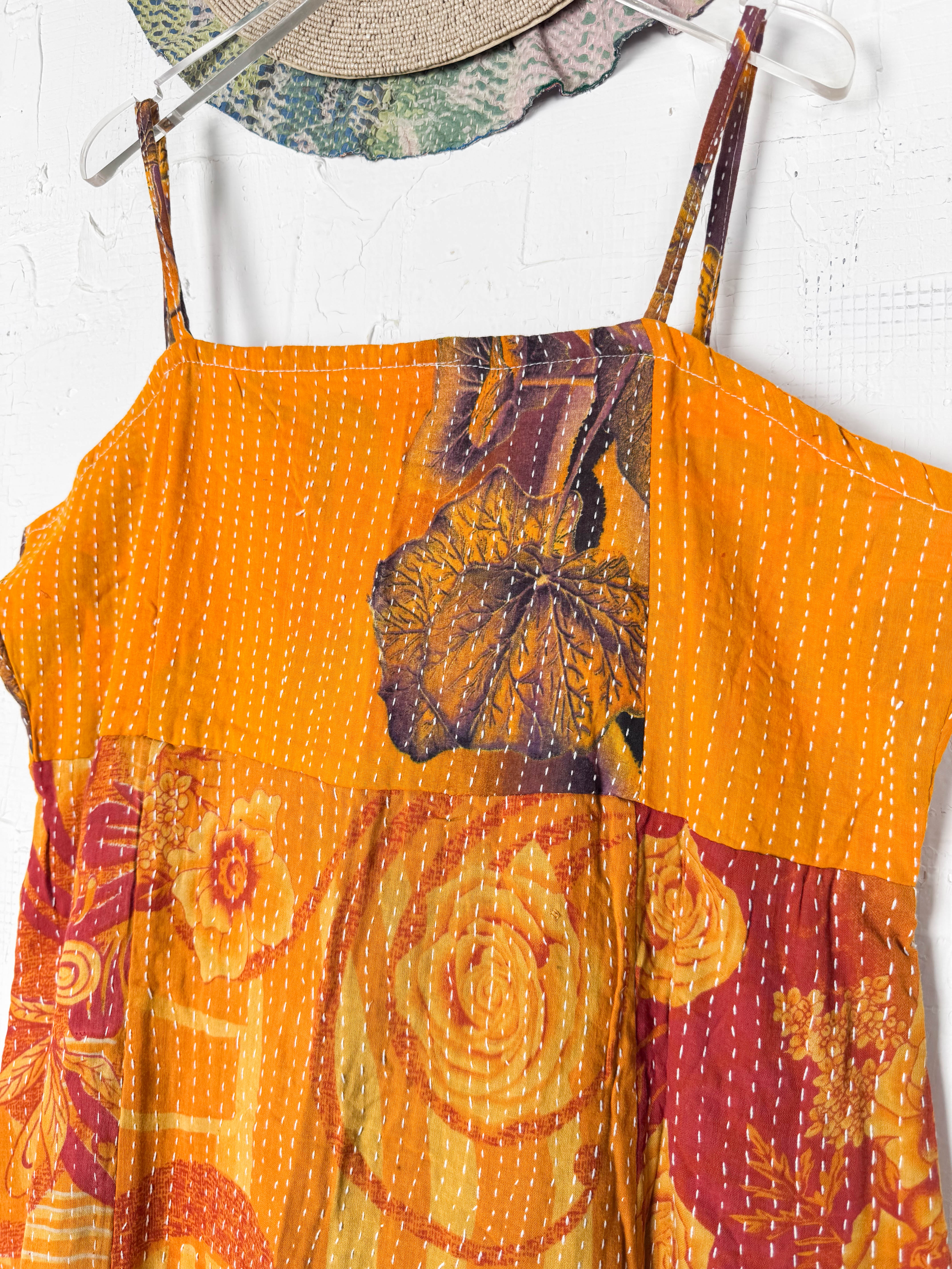 Designed to celebrate your silhouette, this midi-length Kantha dress drapes and flows with graceful movement. Crafted from carefully selected Kantha patchwork, each piece showcases a delightful variation in underlying prints and colours, making yours truly one-of-a-kind