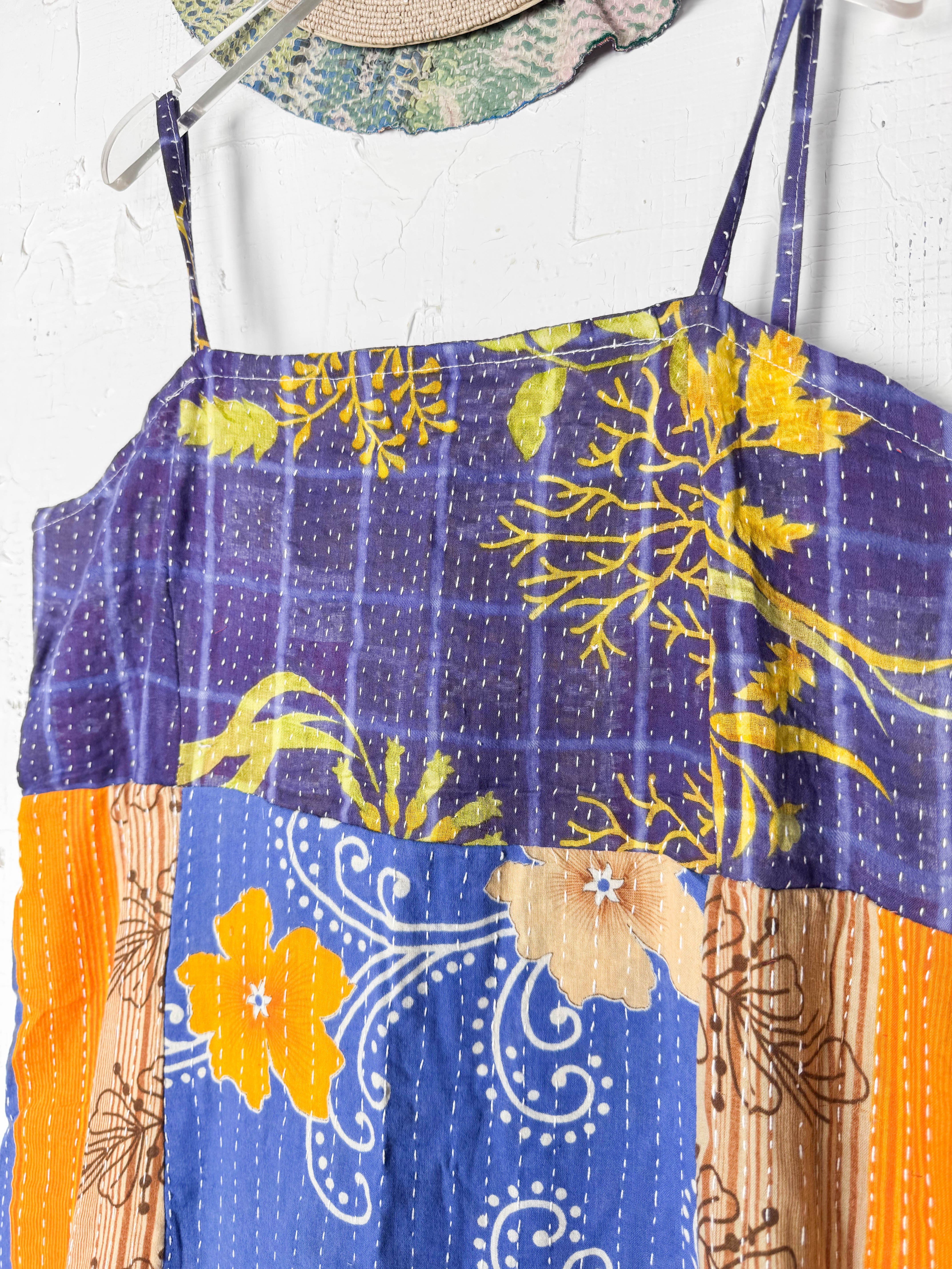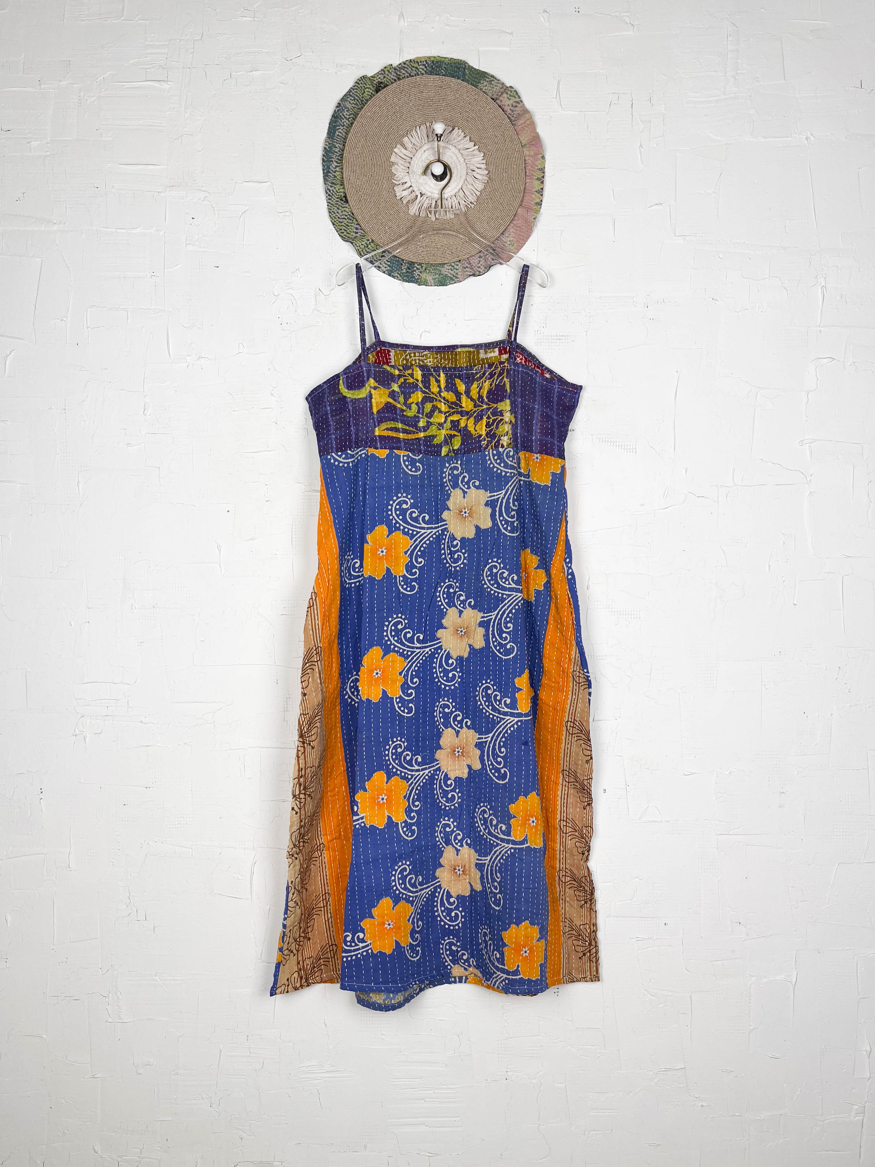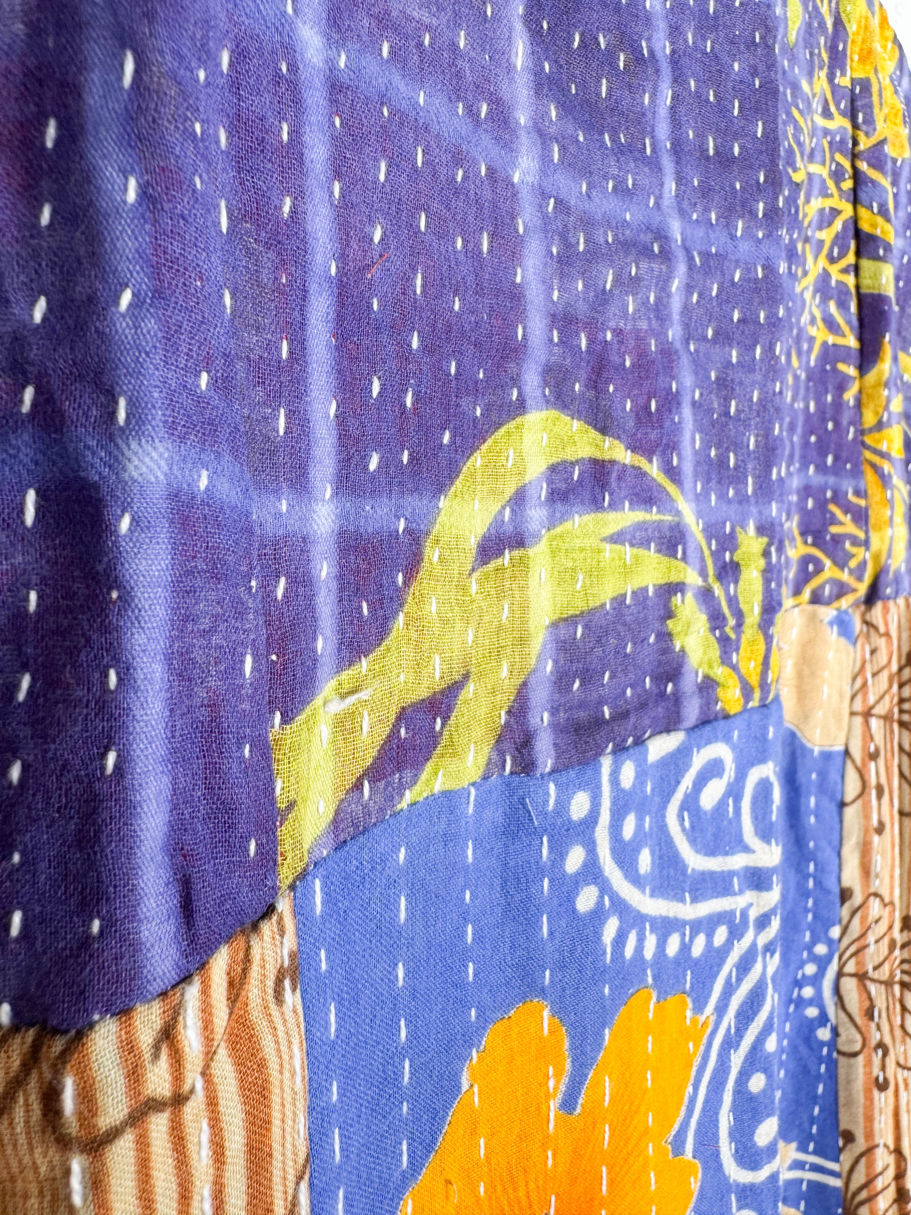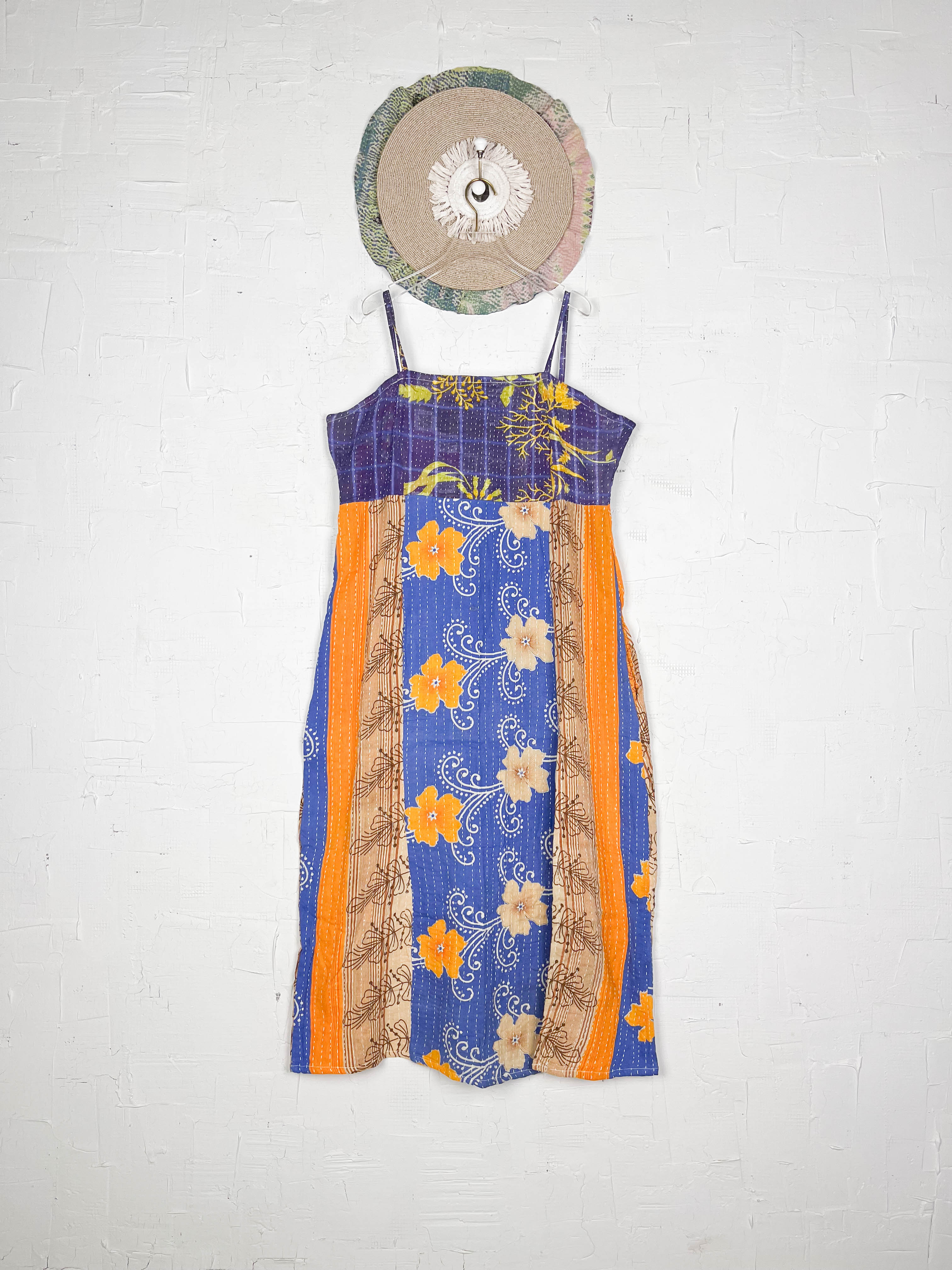 Designed to celebrate your silhouette, this midi-length Kantha dress drapes and flows with graceful movement. Crafted from carefully selected Kantha patchwork, each piece showcases a delightful variation in underlying prints and colours, making yours truly one-of-a-kind